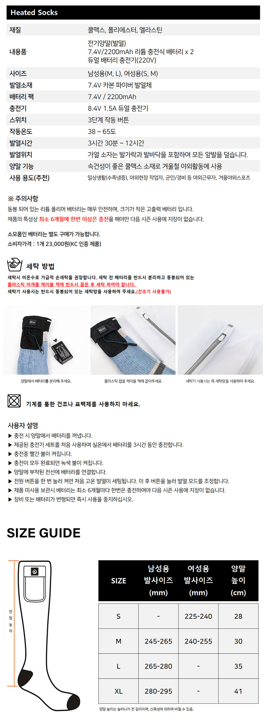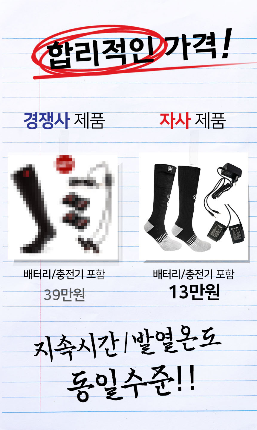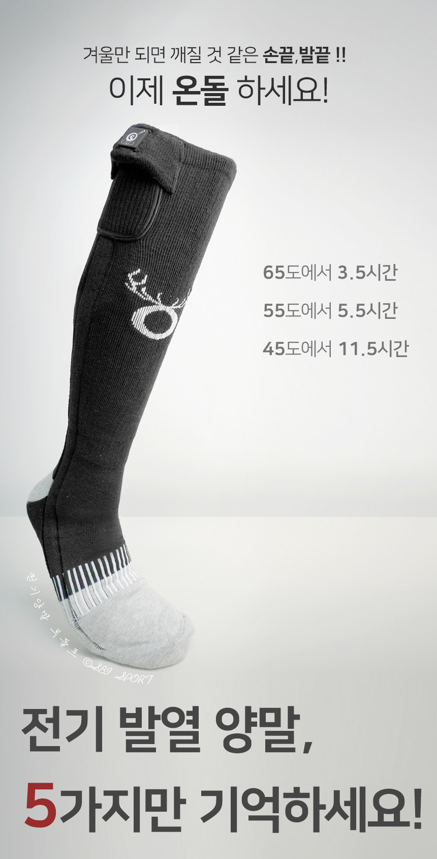 온돌히트 전기 발열양말 루돌프 - 웜++ (SS05C) 이미지 확대 보기